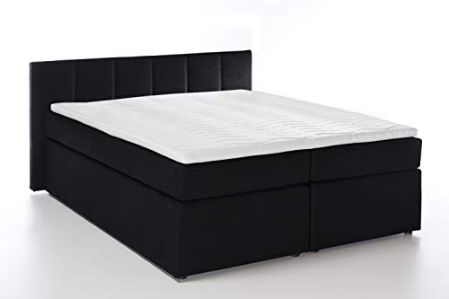 BOXSPRINGBETT VALINA Topper-Bezug ist abnehmbar und waschbar Steppung quadratisch gesteppt Matratzen 7-Zonen Taschenfederkern-Matratze + Bonell-Federkern-Matratze + inkl. Visco-Topper mit Memoryeffekt | SCHONT DEN RÜCKEN Liegefläche vom Bett 200x200cm | Härtegrad H2/H3 (1x H2 + 1x H3) | Farbe Schwarz | Liegehöhe mit Topper 65 cm | Liegehöhe ohne Visco-Topper 60 cm